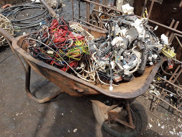 But I saw a different side of Agbogbloshie when I visited it in 2018. As an academic who researches e-waste, waste and the circular economy, I was struck by the site’s thriving hierarchical ecosystem of entrepreneurial activity. Everything had its place. There were dedicated spaces for dismantling and handling different waste streams, repair and refurbishment activities and weighing scales.