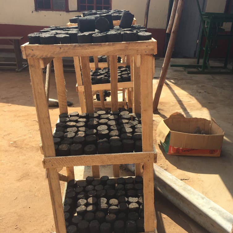 The producing groups have established laboratories in the slums to test the different ingredients before rolling the products out for sale. And one of the key sales pitches is the emissions reduction of the briquettes compared to charcoal.