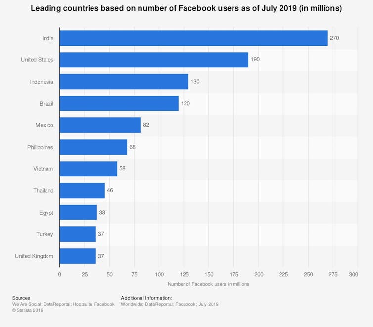 We Are Social, DataReportal, Hootsuite, Facebook via Statista