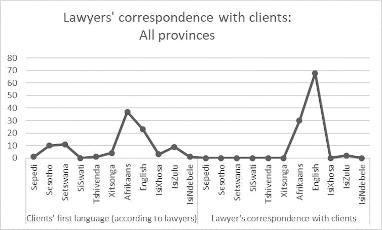 The data from our study also showed that even when lawyers knew their clients didn’t speak English as a home language they continued to communicate, in writing and orally, with those clients in English. This happened even when the lawyers themselves spoke their clients’ home language and would be able to communicate properly with them in this language.