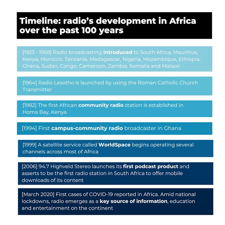 This year’s celebration of the 100-plus years of radio offers us an opportunity, as African media scholars, to reflect on the historical significance, cultural relevance, political power and social impact of the medium on the continent. We home in on examples from the regions we’ve studied to demonstrate this rich history.